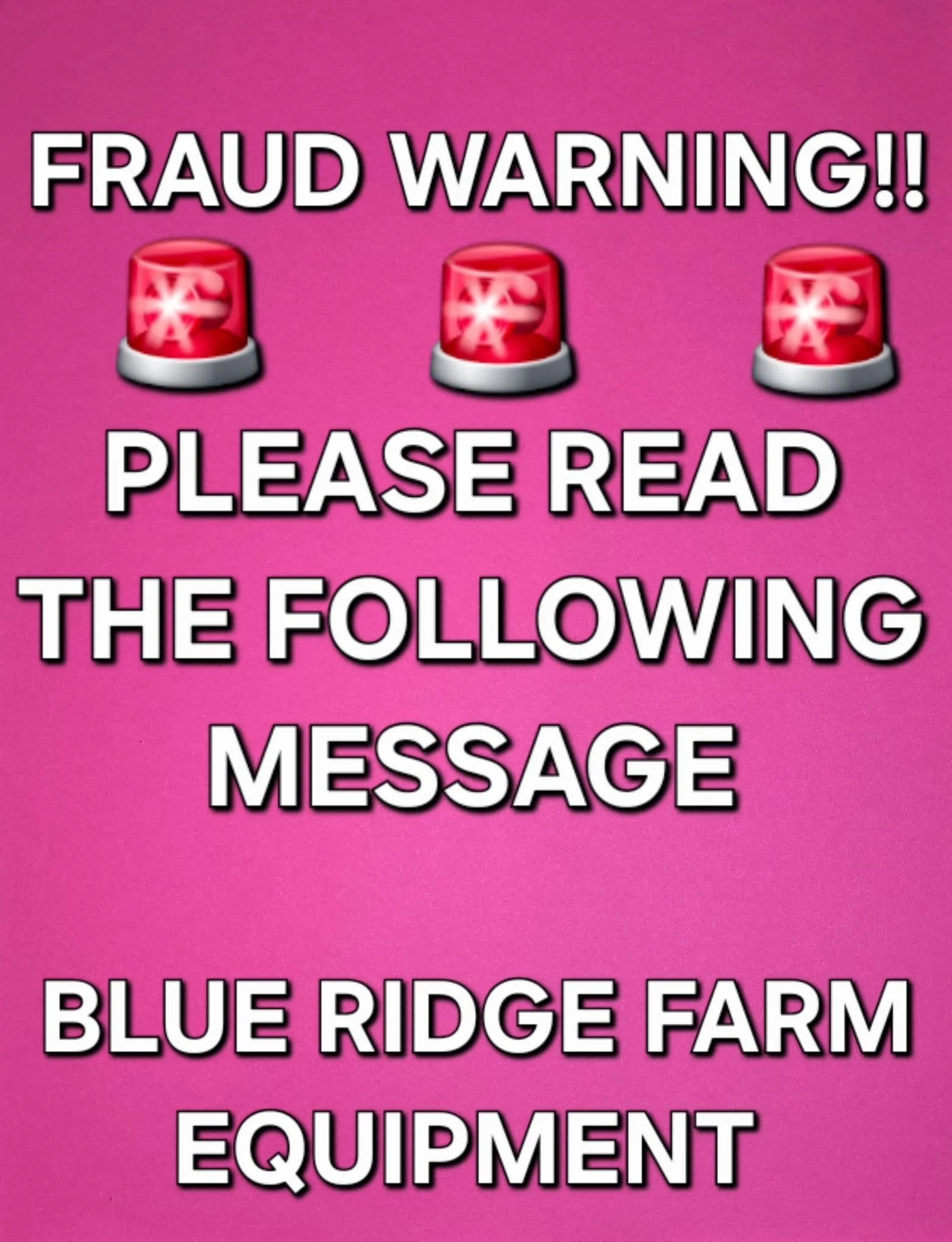 We want to reiterate that we are the only legitimate Blue Ridge Farm Equipment! Don't fall victim to a scam!!